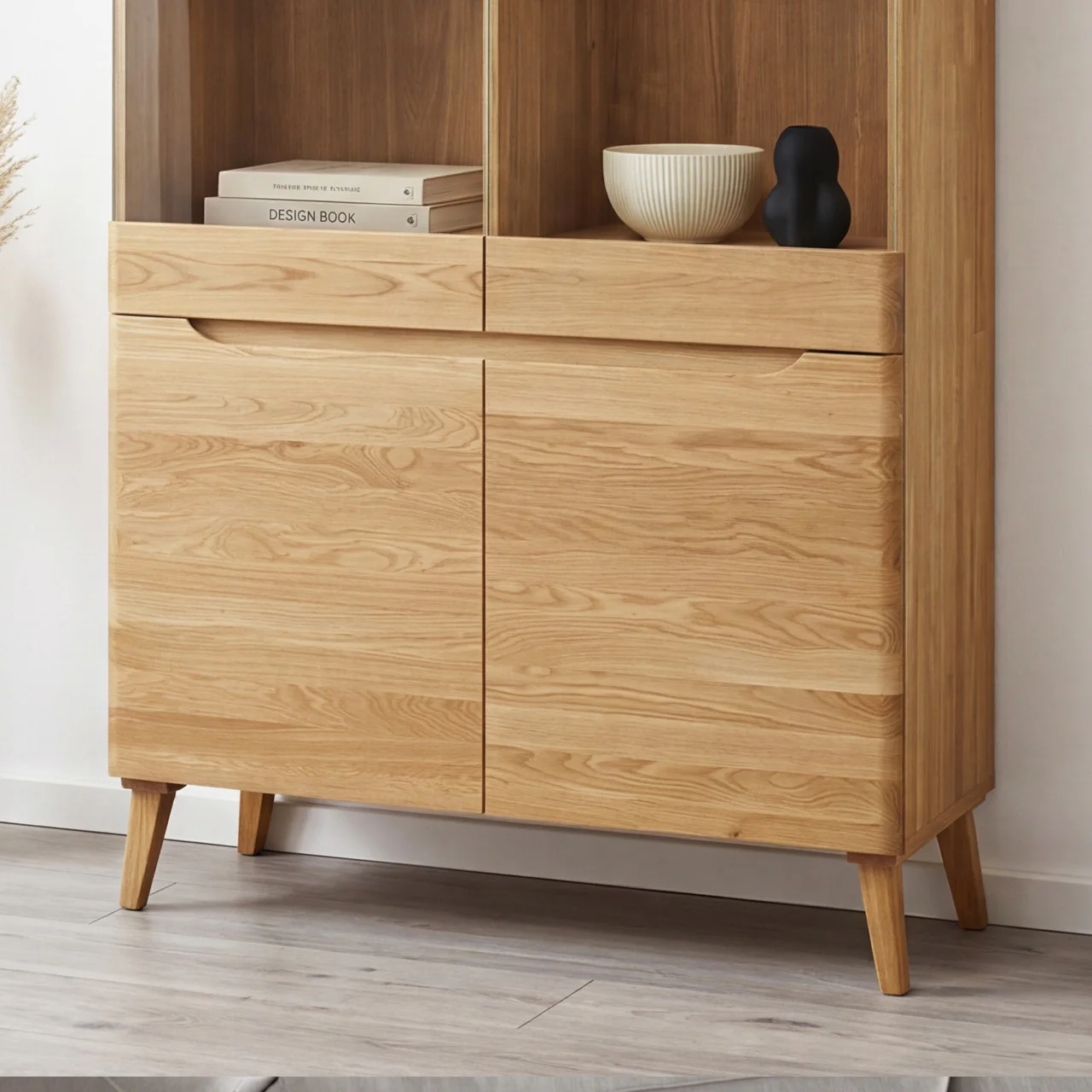 La vitrina Milán 2 está elaborada en madera maciza de roble natural, un material noble, resistente y lleno de carácter. Su parte superior con dos puertas de cristal es ideal para exhibir vajilla, libros o decoración, mientras que la zona inferior cerrada aporta un práctico espacio de almacenaje. Gracias a su diseño estilizado, sus patas de madera y sus líneas limpias, esta vitrina de roble macizo aporta calidez, elegancia y autenticidad a cualquier espacio.
