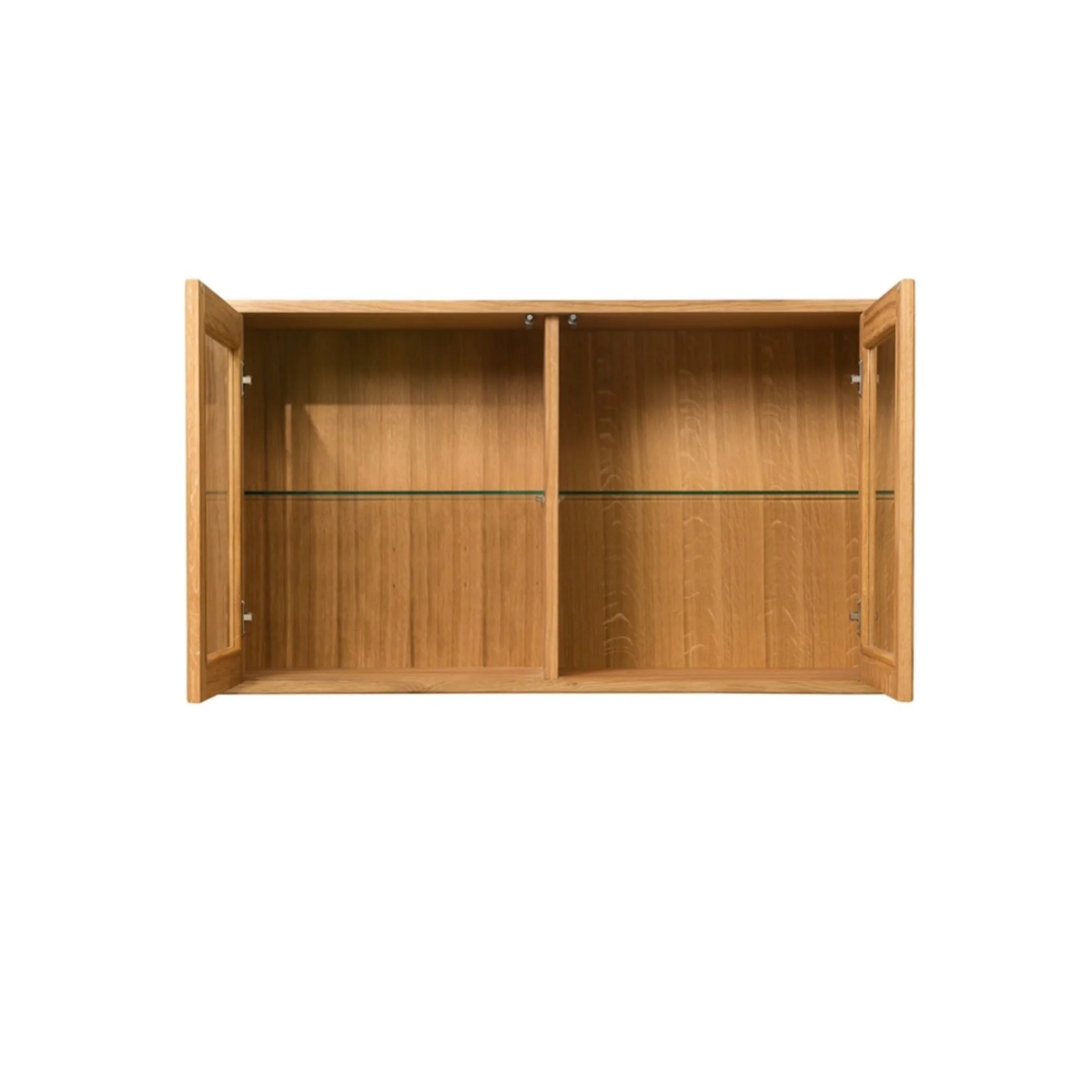 Armario de pared Elsa 21 con 2 puertas de cristal y fabricado en roble macizo, de estilo nórdico o escandinavo es la mejor opción para espacios modernos, prácticos y minimalistas. Crea un salón con tu sello propio, combinando este armario de pared con los demás muebles de la línea Elsa.