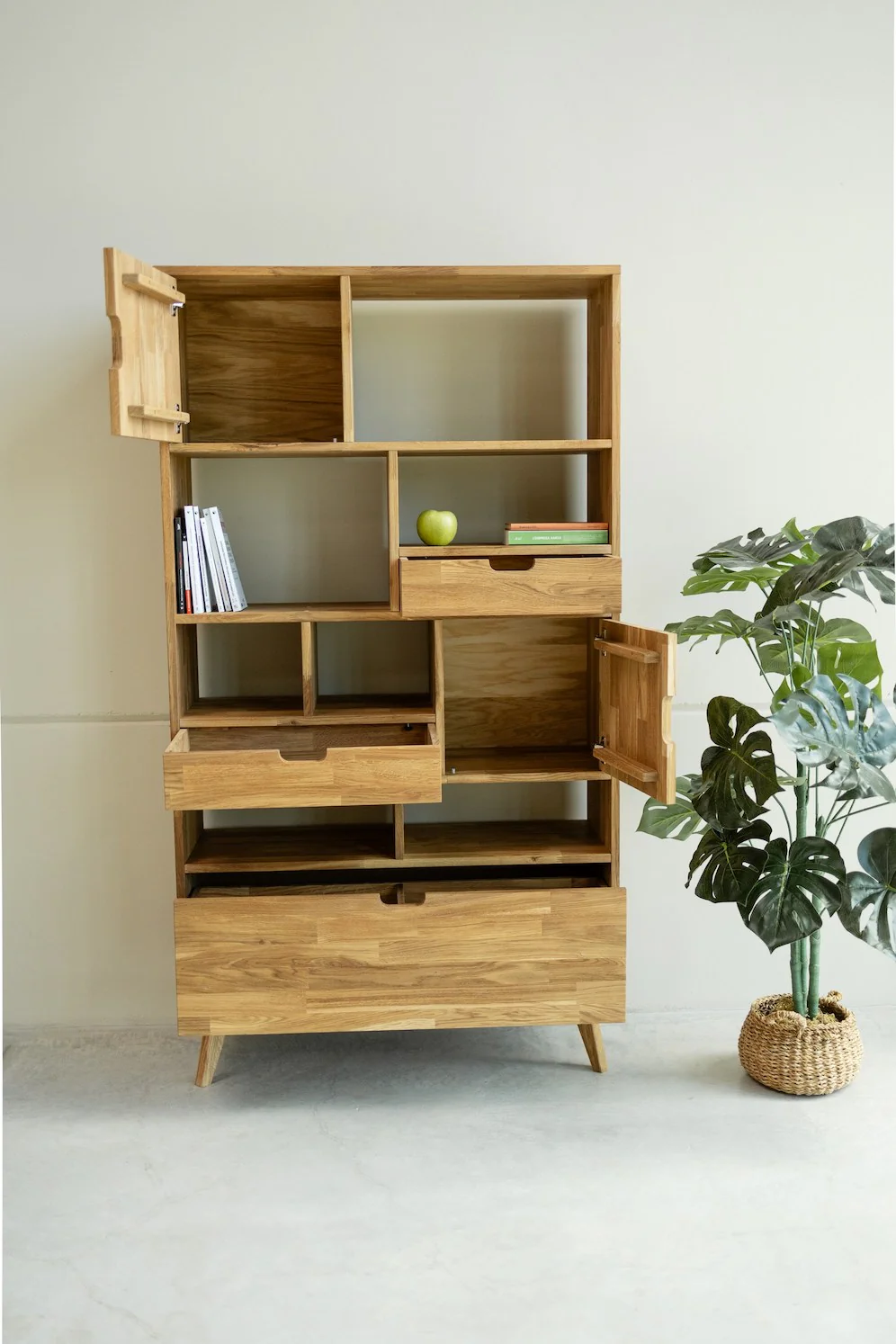 Estamos orgullosos de presentarte el librero de nuestra colección Escandi, alta calidad y elaboración a partir de madera maciza de roble. Este tipo de librero es una solución ideal para dar un toque especial a tu salón o despacho. Dispones de opciones en Roble natural y Roble blanqueado, con gran número de huecos y cajones con puerta donde guardar tus cosas de manera ordenada. NordicStory presenta un diseño que destaca por un estilo clásico y elegante que genera un ambiente personal y actualizado.