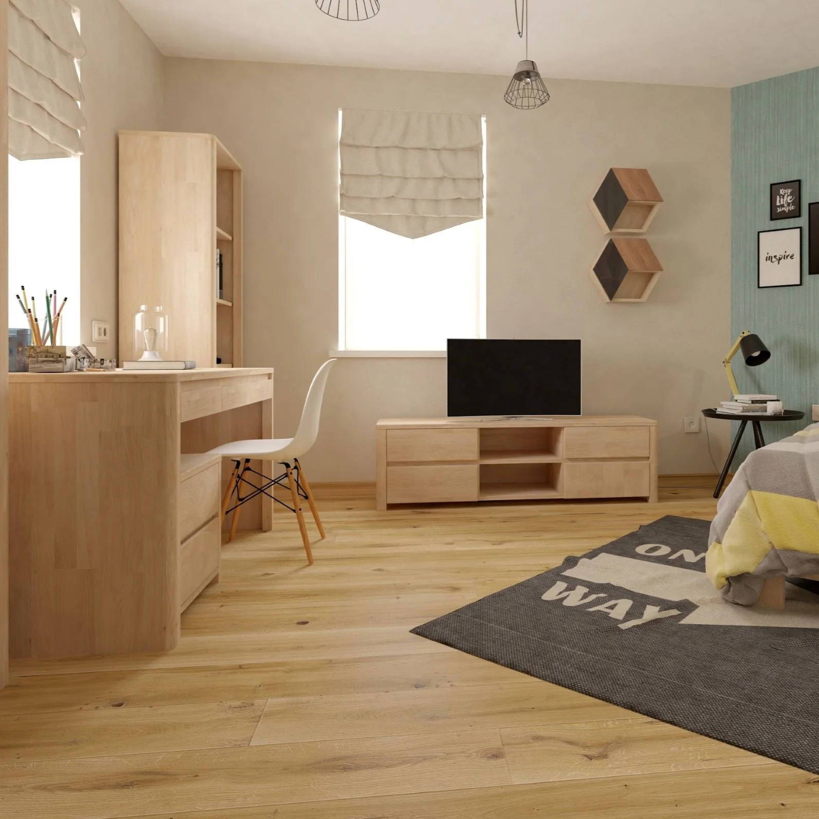 Elsa es un mueble de TV de madera de roble con 4 cajones y doble estante. Un diseño de corte clásico para personas que buscan una casa con un estilo atemporal. Acabado 100% natural con aceite de Tung libre de COV que no emiten ningún tipo de partículas tóxicas y que garantiza la protección y durabilidad de la madera, manteniendo su textura y esencia naturales.