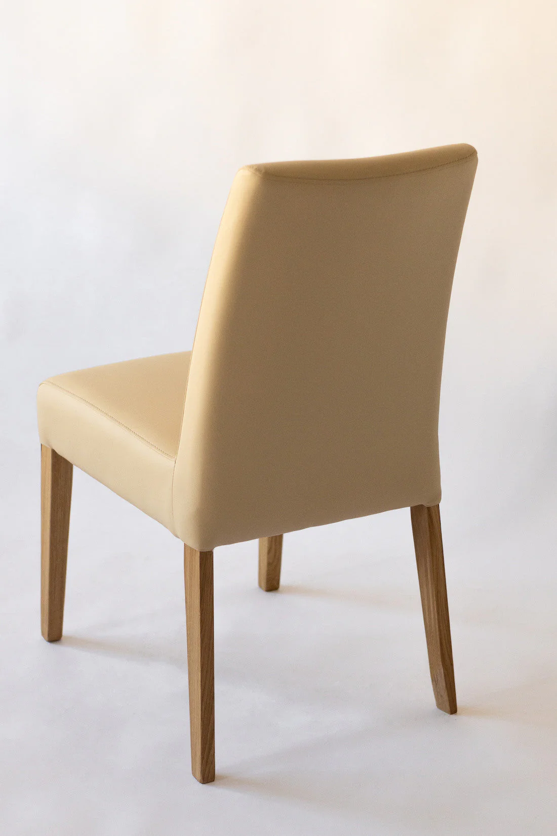 La silla Malaga tiene un diseño atemporal y está tapizada en color beige en polipiel de PVC. Se trata de una silla robusta, resistente y elegante realizada en madera maciza de roble.